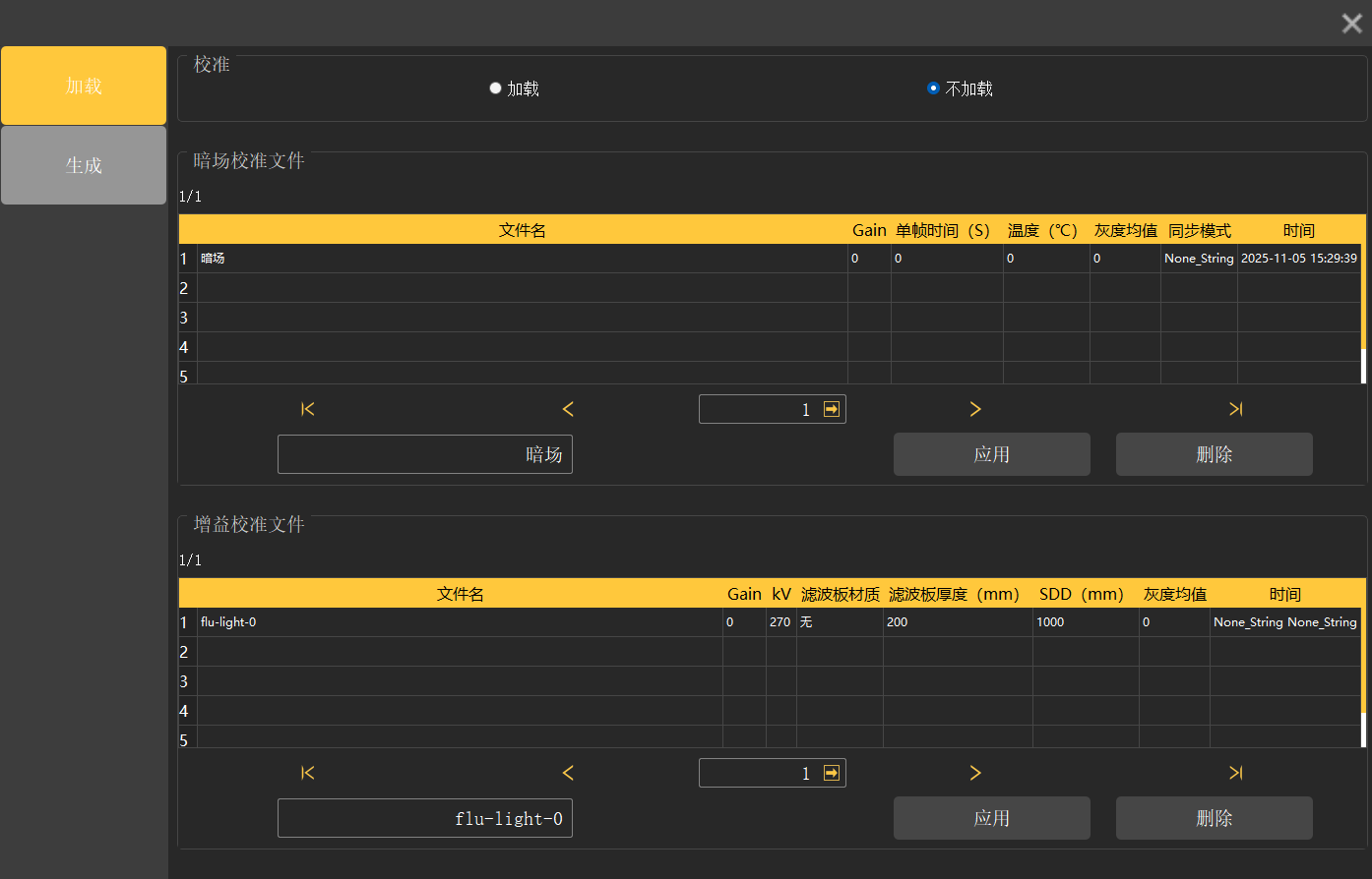 选择亮场(增益)文件首先应确定增益一致,再选择kV接近的校准文件。