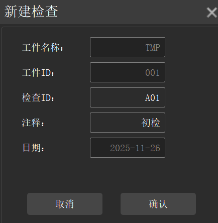 点击左侧“新建”按钮,在弹出界面输入工件名称、工件ID、工件制造商、业主单位、注释信息。